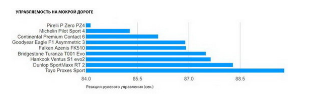 Главный акцент эксперты журнала EVO сделали на управляемости шин при езде по сухой и мокрой трассе, а также на эффективности торможения. Также на итог сравнительного теста повлияли и такие критерии, как стабильность покрышек и четкость реакций на рулевые команды при высокоскоростной езде.