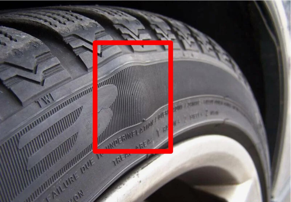 - Выпуклости или «грыжи» по бокам шин