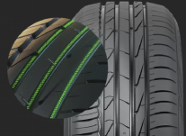 Что еще можно увидеть на протекторе автошины? Индикатор износа авторезины. Некоторые продвинутые производители авторезины вроде Ikon (Nokian Tyres) наносят на рабочую изнашиваемую часть шины цифровые значения остатка проектора в мм, но даже у них имеются перемычки в дренажных желобках, которые отображают минимальный остаток протектора. Когда протектор сотрется и сравняется с этой самой минимальной отметкой, то шину следует заменить на новую. Преимуществом данного метода является тот факт, что покрышка может изнашиваться неравномерно и как новенькая средняя часть рисунка при стертых боковинах вовсе не означает возможность дальнейшей эксплуатации авторезины.