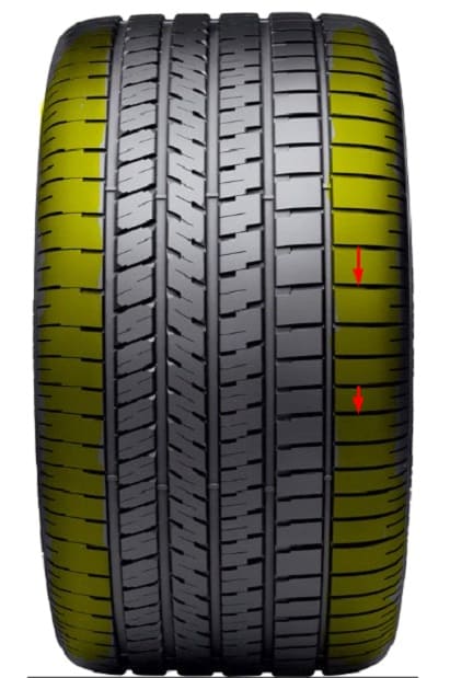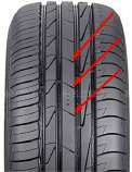 Другое дело, что внешнее плечо у ассиметричной шины всегда шире внутреннего для лучшего контроля и сцепления в поворотах.