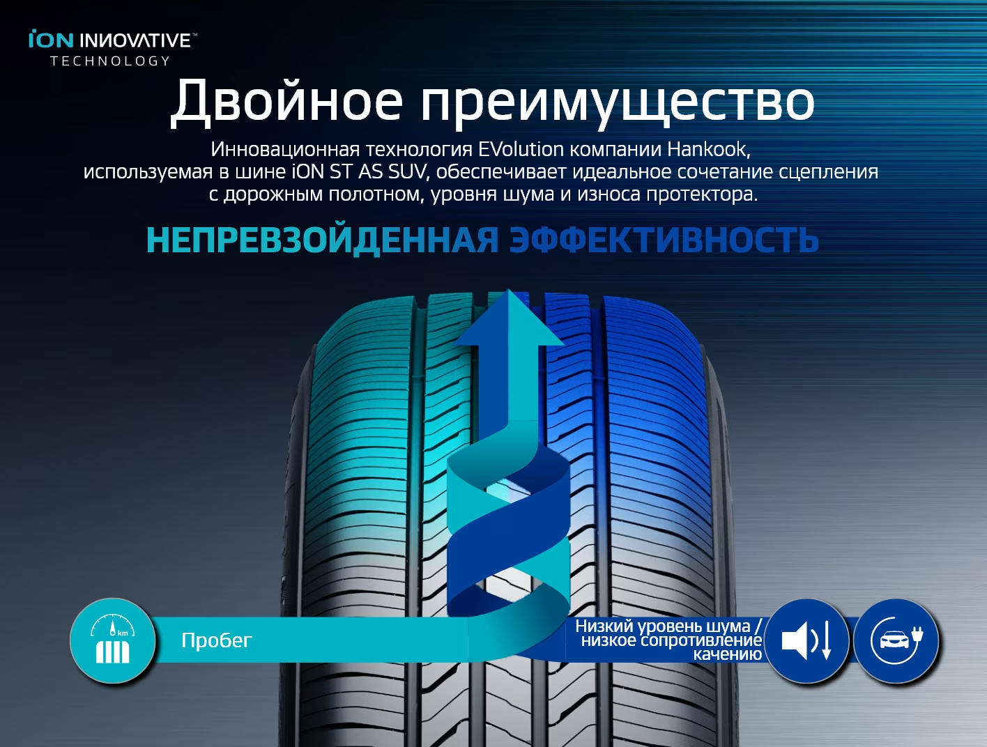 Шина Ханкук иОН СТ АС ИХ61 создана как технологичный инструмент для владельцев электрокаров и гибридов, стремящихся к максимальной эффективности, комфорту и надёжности. Она сочетает в себе низкое сопротивление качению, превосходную акустическую изоляцию и выдающийся ресурс, демонстрируя идеальный баланс между спортивным поведением и экономичностью.