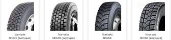 - ND626. Покрышки Normaks ND626 предназначаются для ведущих осей и устанавливаются на тяговых колесах, поэтому главным требованием, предъявляемым к этим шинам, является надежное сцепление с дорогой при разгоне и торможении. Чтобы минимизировать количество пробуксовок, особенно при езде с тяжело нагруженным прицепом, в автошинах ND626 использовали блочную структуру протектора с обильной ламелизацией шашек. За счет такого дизайна в контактном пятне формируется больше точек сцепления.